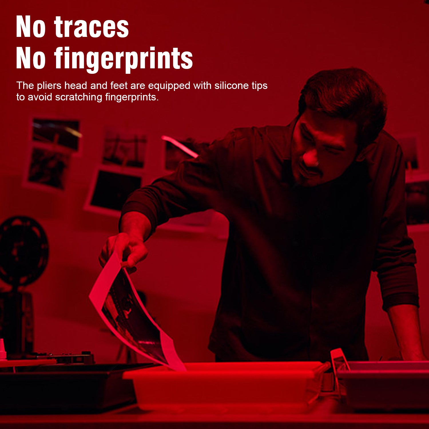 Feature: The three color corresponds to each stage of developing (Developer, stopper and fixer), one extra tongs for spare. The head and foot of the tongs come with silicone tips to avoid scratching the print.